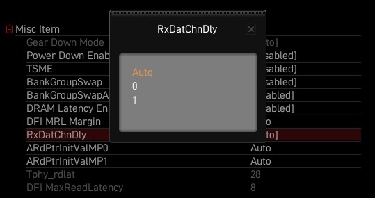 Ich glaube dass könnten Timing optimierungen sein, die fertigungstolleranzen und damit einhergehende Schwankungen in Temperatur spannung und Schichtdicke??? Ausgleichen sollten??MehlstaubtheCat schrieb:RxDatChnDly aktuell auf Auto, hier kann 0 oder 1 auswählen werden