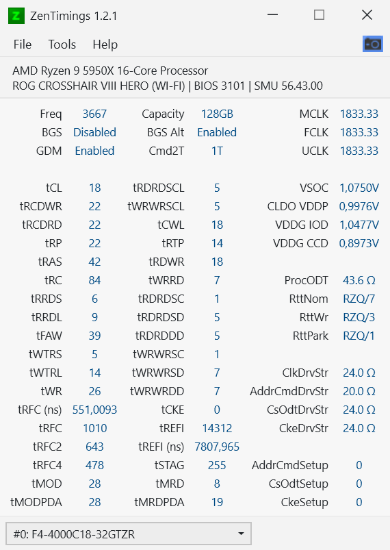 MB: Asus ROG Crosshair Hero VIII Wifi (BIOS: 3101)
