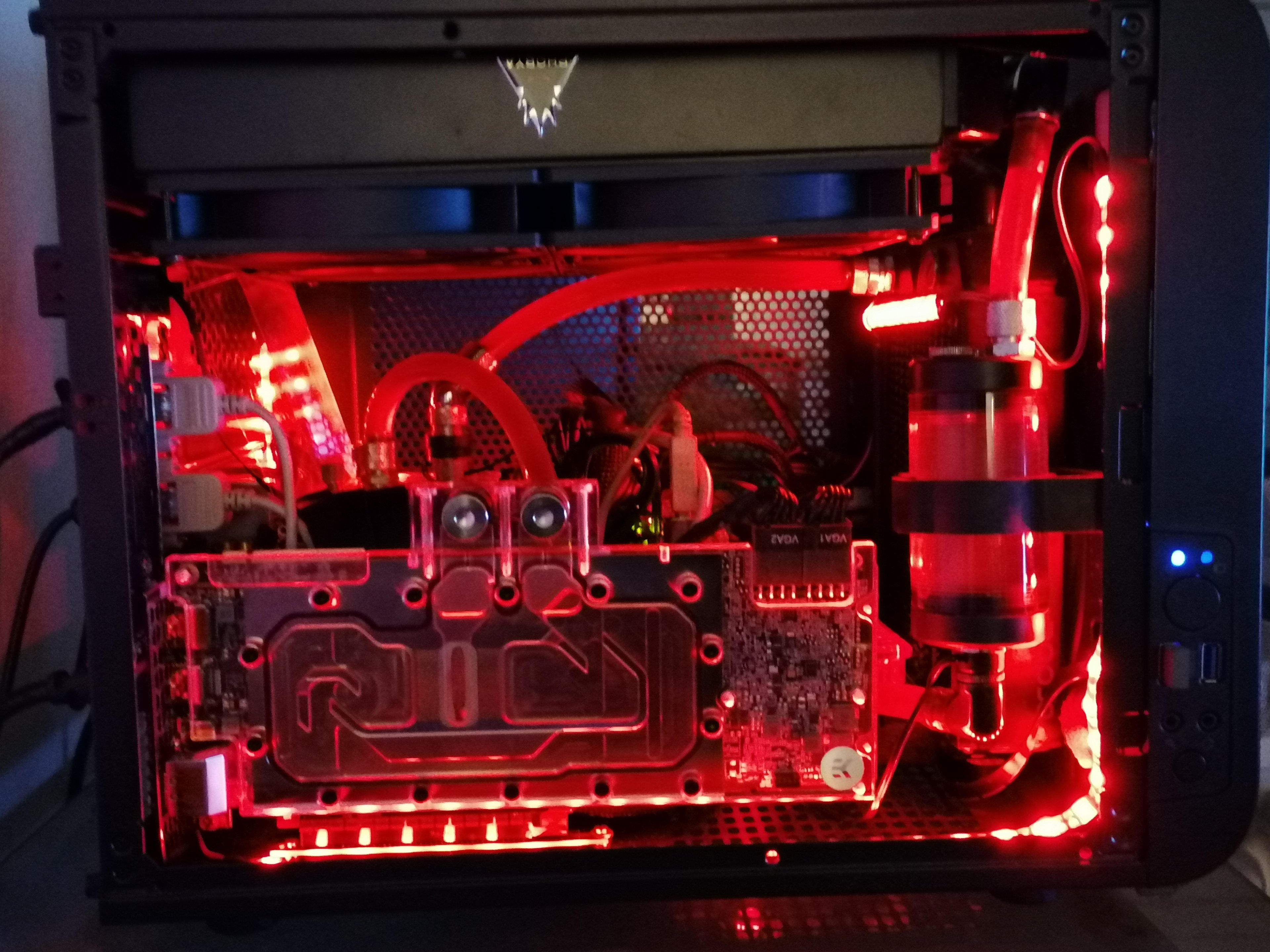Bei mir stehen zwei 120er Lüfter (mit einem sehr breiten Zahnstocher verbunden), auf der Grafikkarten Rückseite.... Dank Wasserkühlung ist da Platz.