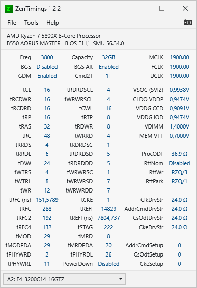 Ich weiß nun nicht, ob der tRFC grundsätzlich die richtige Richtung in diesem Fall ist oder die Spannungen weiter anzupassen sind. ZenTimings liest auch nicht alle aus, vermutlich aufgrund meines B350? VDIMM beträgt jedenfalls aktuell 1.385V