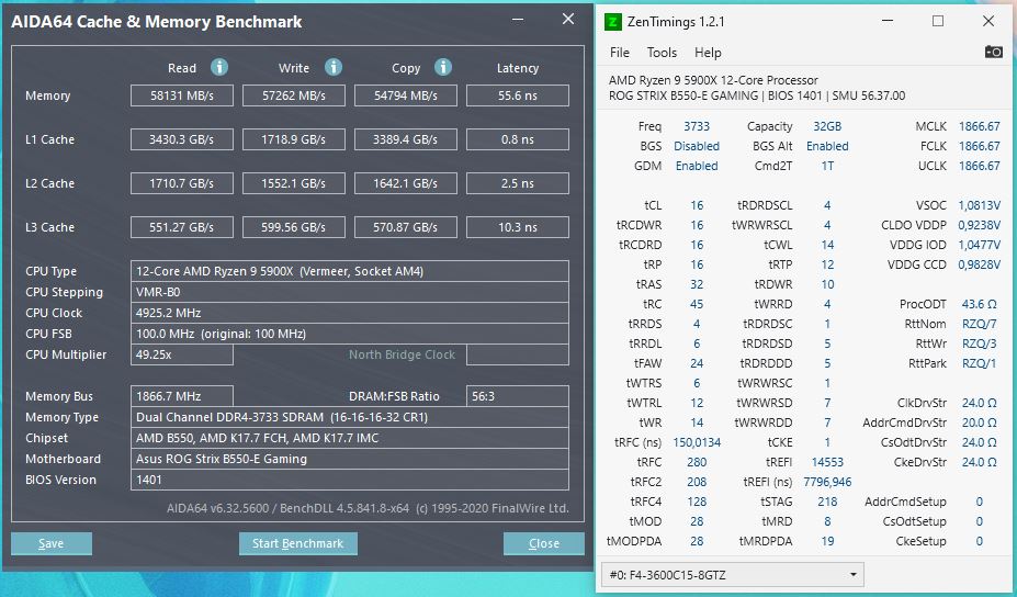Hat gepostet und Windows wurde geladen. Bei Aida64 hat sich die Latenz um 0.7ns verbessert. Erster Stabilitätstest mit TM5@1usmus_v3 hat direkt einen Bluescreen ergeben.