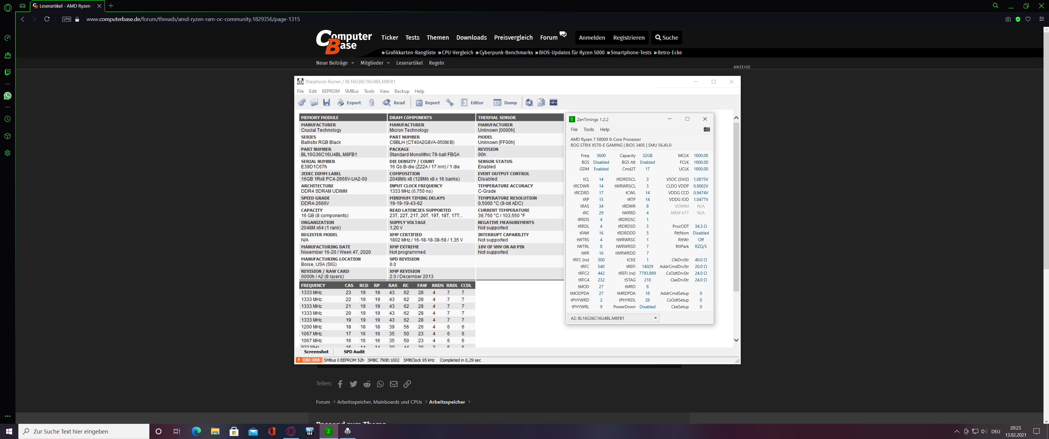 So mein erster Versuch mit Vdimm 3,8V (3800Mhz klappt leider nicht egal wie lasch ich die Timings / hoch die Spannung setze ).