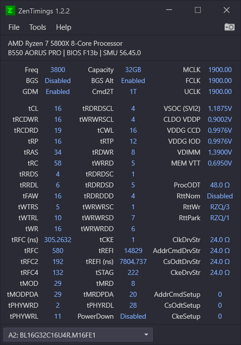 zentimings zeigt die werte so an, wie ich sie im bios hinterlegt habe.