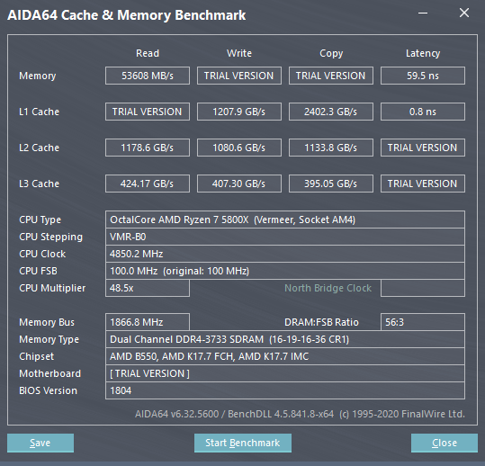 Aida64 spuckt beim latency test so 54.1ns aus. Bin soweit zufrieden, aber vielleicht ist ja noch mehr drin.