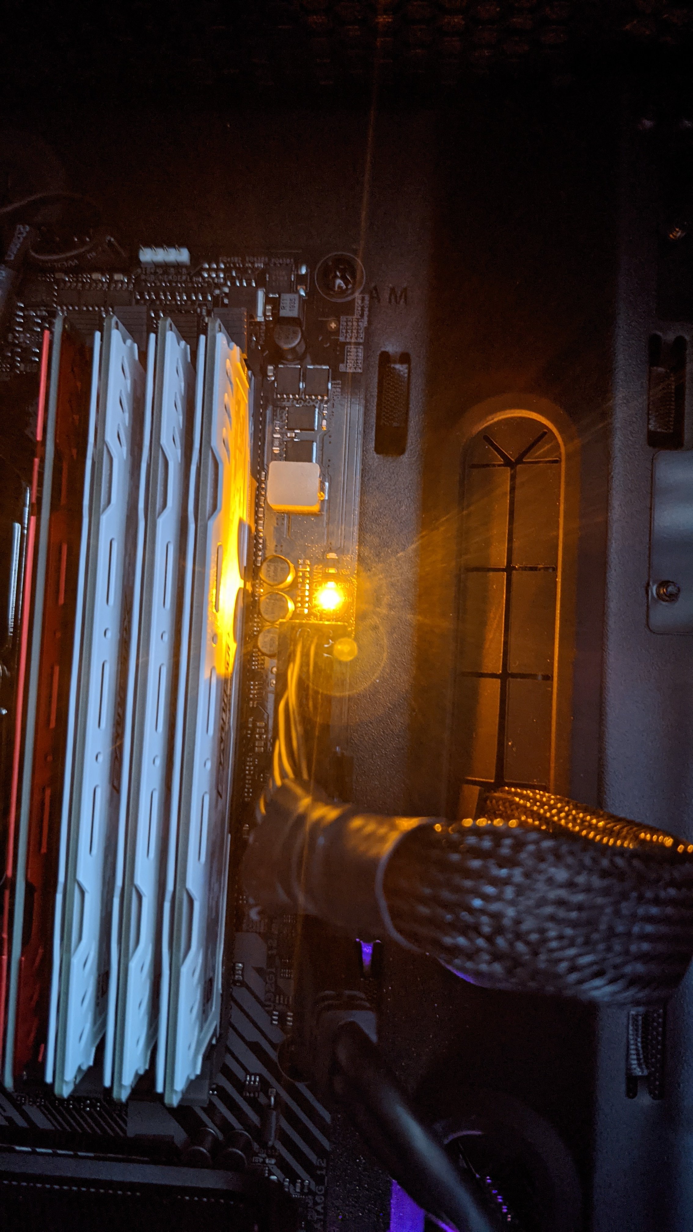habe auch mich mal getraut den ram zu übertakten. Habe 4x 16 GB micron e dies und daher die Lasche Timings 3800 CL16 ~1,38v von ZeroCoolRiddler als start versucht. Das führte leider dazu, das der Rechner nicht mehr booted. Beim Einschalten laufen alle Lüfter und ein Lämpchen mit der Bezeichnung DRAM leuchtet.