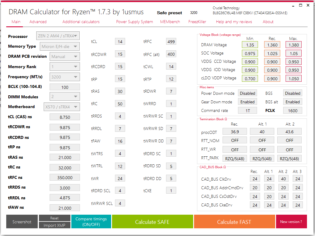 Die Cads kannst du mal mit 24, 20, 24, 24 Ohm probieren, Reihenfolge von oben nach unten (ClkDrvStr, AddrCmdDrvStr, usw.).