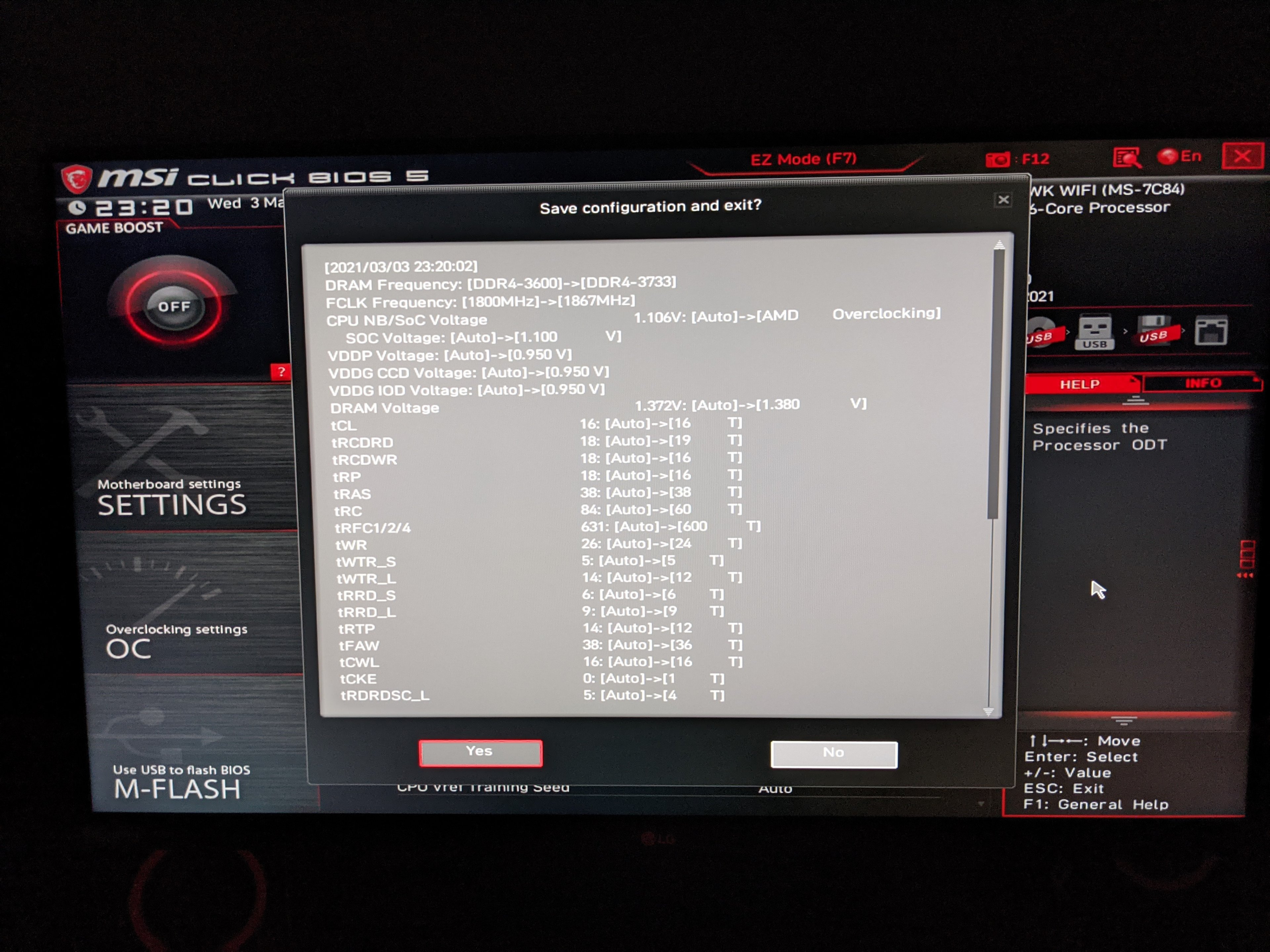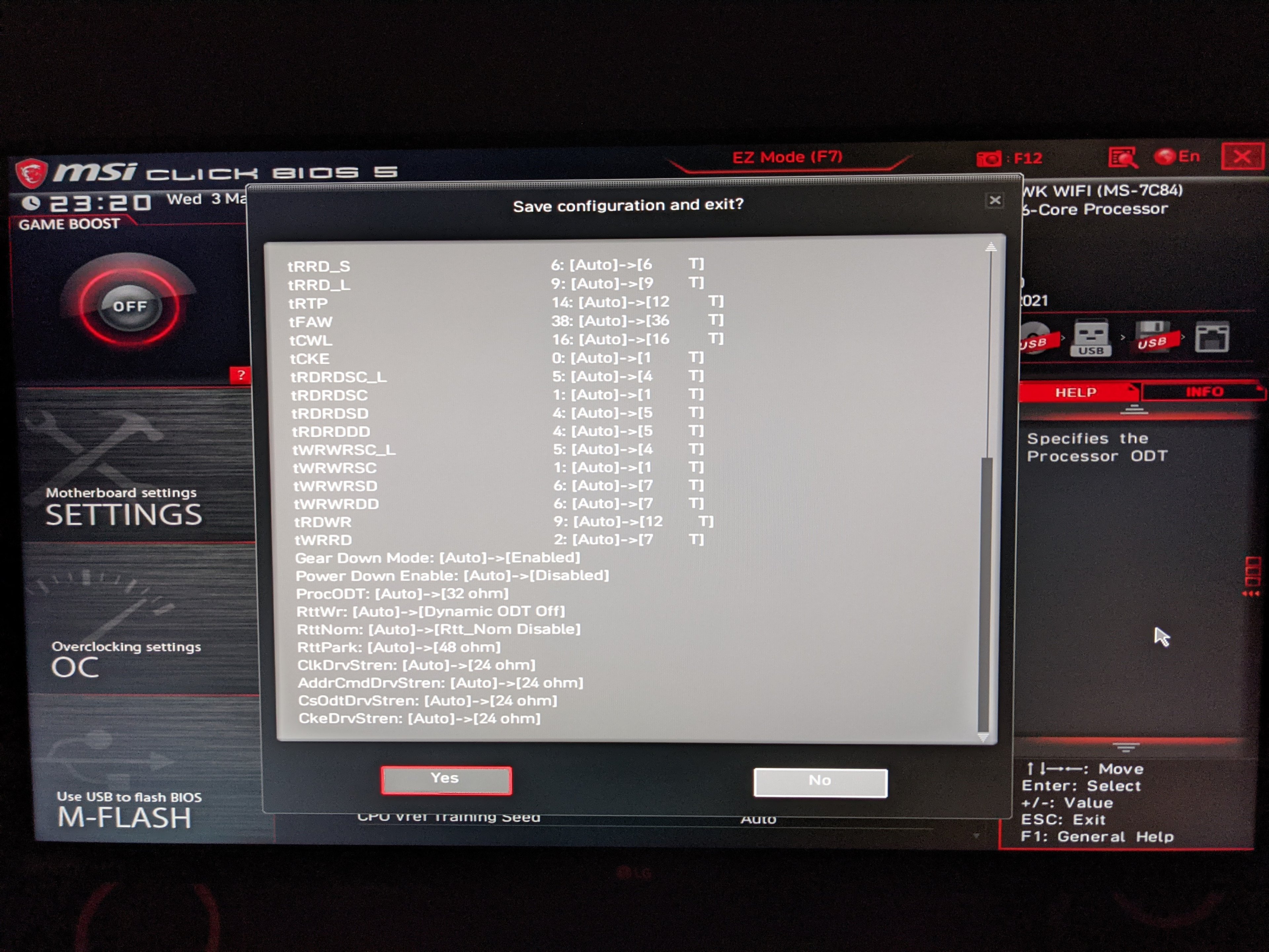 ProcODT ist recht hoch, wie ich finde. Die Zen2 und Zen3 arbeiten mit recht niedrigeren Werten. Versuch es mal mit 32 Ohm.