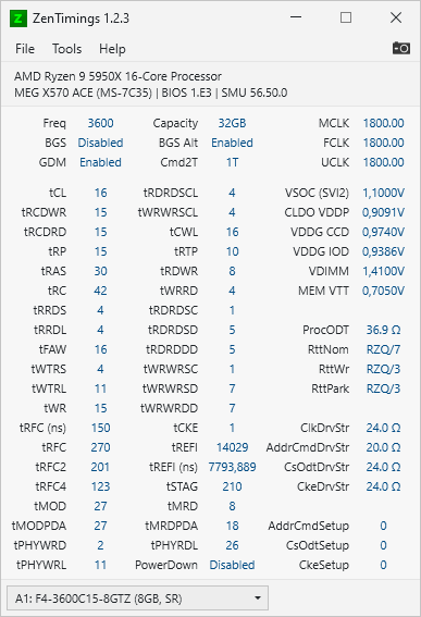 Was mir noch auffällt: Obwohl ist SoC im Bios auf 1.13V gestellt habe (aus 1.125V machte er automatisch 1.120V), zeigt ZenTimings 1,1188V an.
