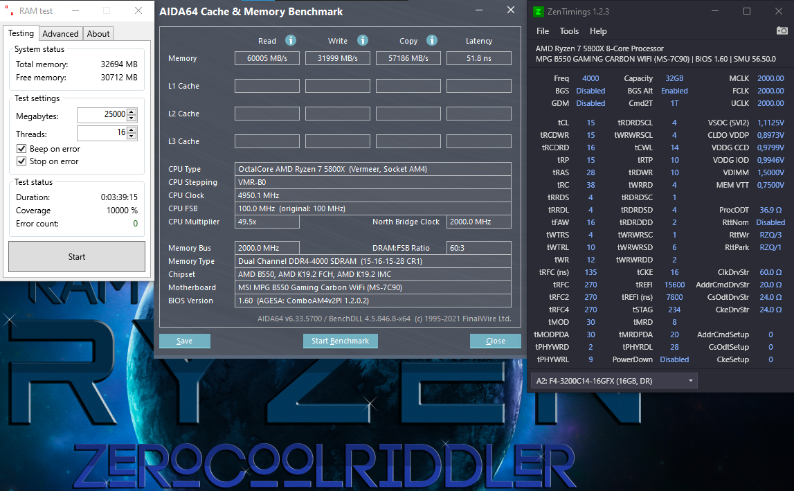 Jetzt meine Frage, habe ich irgendwas Grundlegendes falsch gemacht oder übersehen? Meine Erfahrungen bestehen bisher hauptsächlich daraus, die Werte von ZeroCoolRiddler einzugeben und danach AIDA/Karhu laufen zu lassen. Ist mein Kit vielleicht einfach nicht für 4000Mhz geeignet? Habe noch ein zweites, baugleiches Kit hier liegen, dass ich bei Gelegenheit auch mal testen werden.