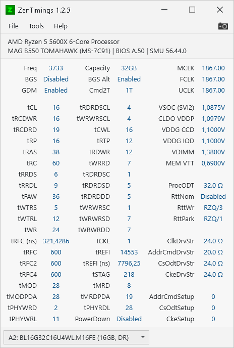 Naja 3800 16-16-16-36 1T GD on mit 1,375v vDimm sind mir auch recht. Kommt auf knappe 58Gb read, write und 56Gb copy in Aida64 Extreme. Latenz müsste high 50er sein. 58-59 oder so.