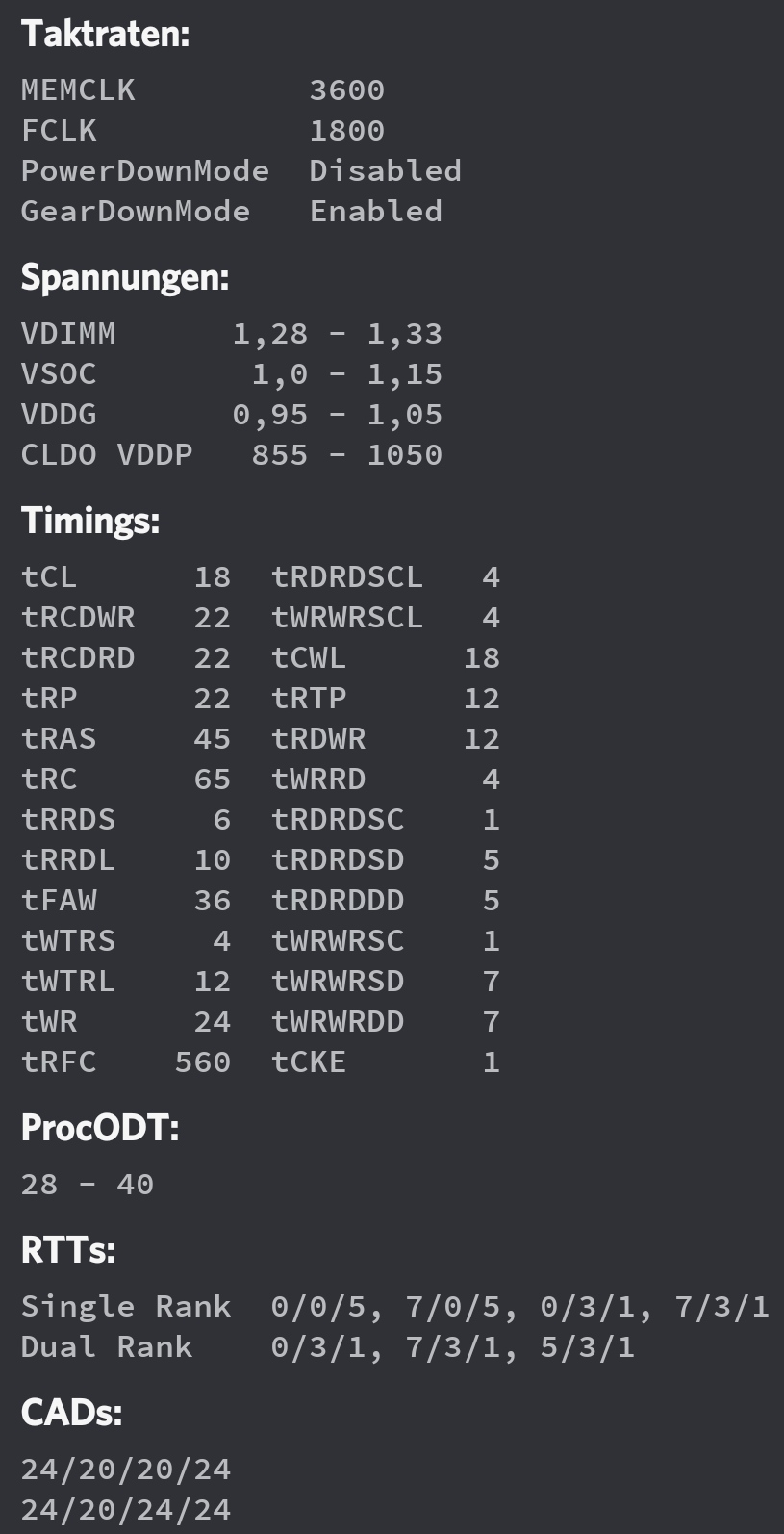 Gibt's eigentlich Scharfe Timings für die crucial ballistix LT Sport RAM für 3600 MHz?