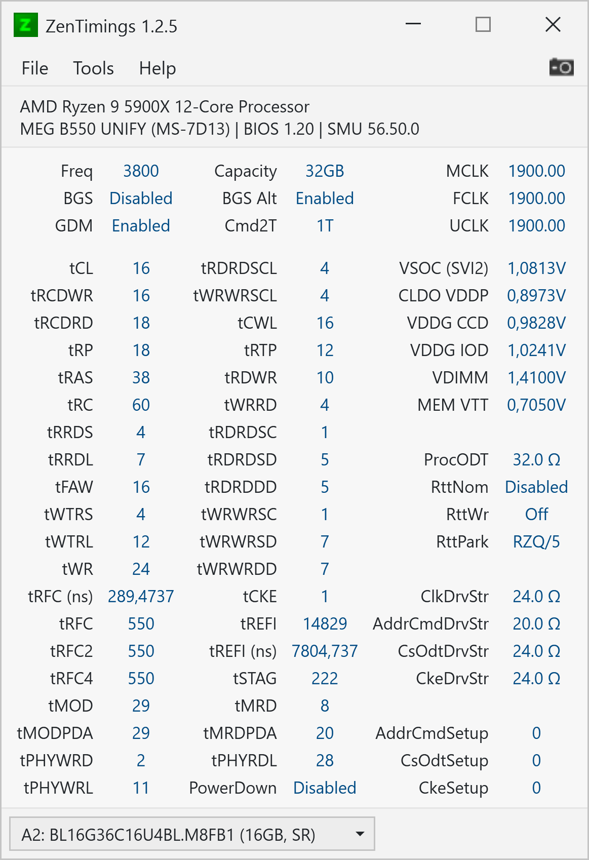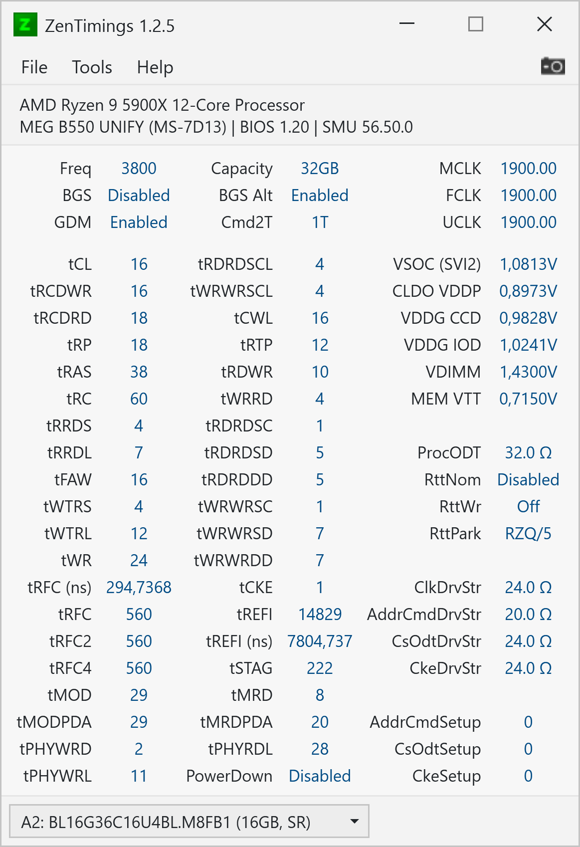 Ich sehe es gerade jetzt bei den Zentimings. 1,43V ist aber nicht von mir eingestellt, sondern wurde automatisch übernommen. Mein VDIMM liegt bei 1,42V im UEFI.ZeroCoolRiddler schrieb:Wenn du deinen tRFC Wert hast, kannst du mal versuchen die Vdimm zu senken. Das dürfte auch etwas tiefer noch gehen.