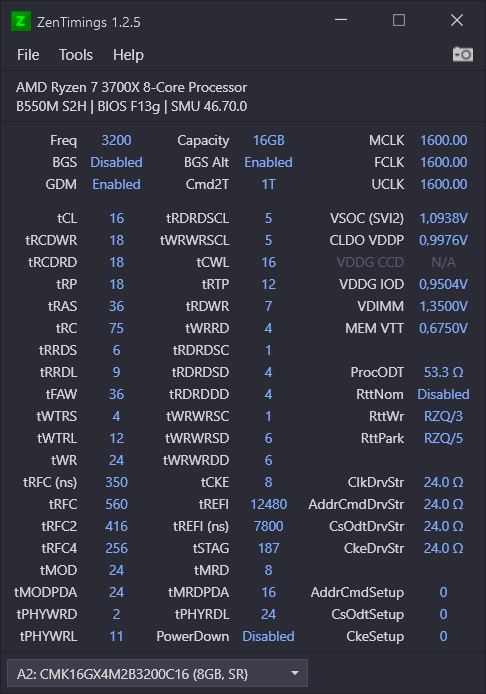 Ist momentan nur XMP aktiviert und Rest auf Auto.Ferdinand! schrieb:SOC Spannung erscheint mir für 3200 mhz ziemlich hoch. Hast du mal einen anderen ProcODT/RTTs/CADs versucht? RTTs 0-0-5 und CADs 20-20-20-20