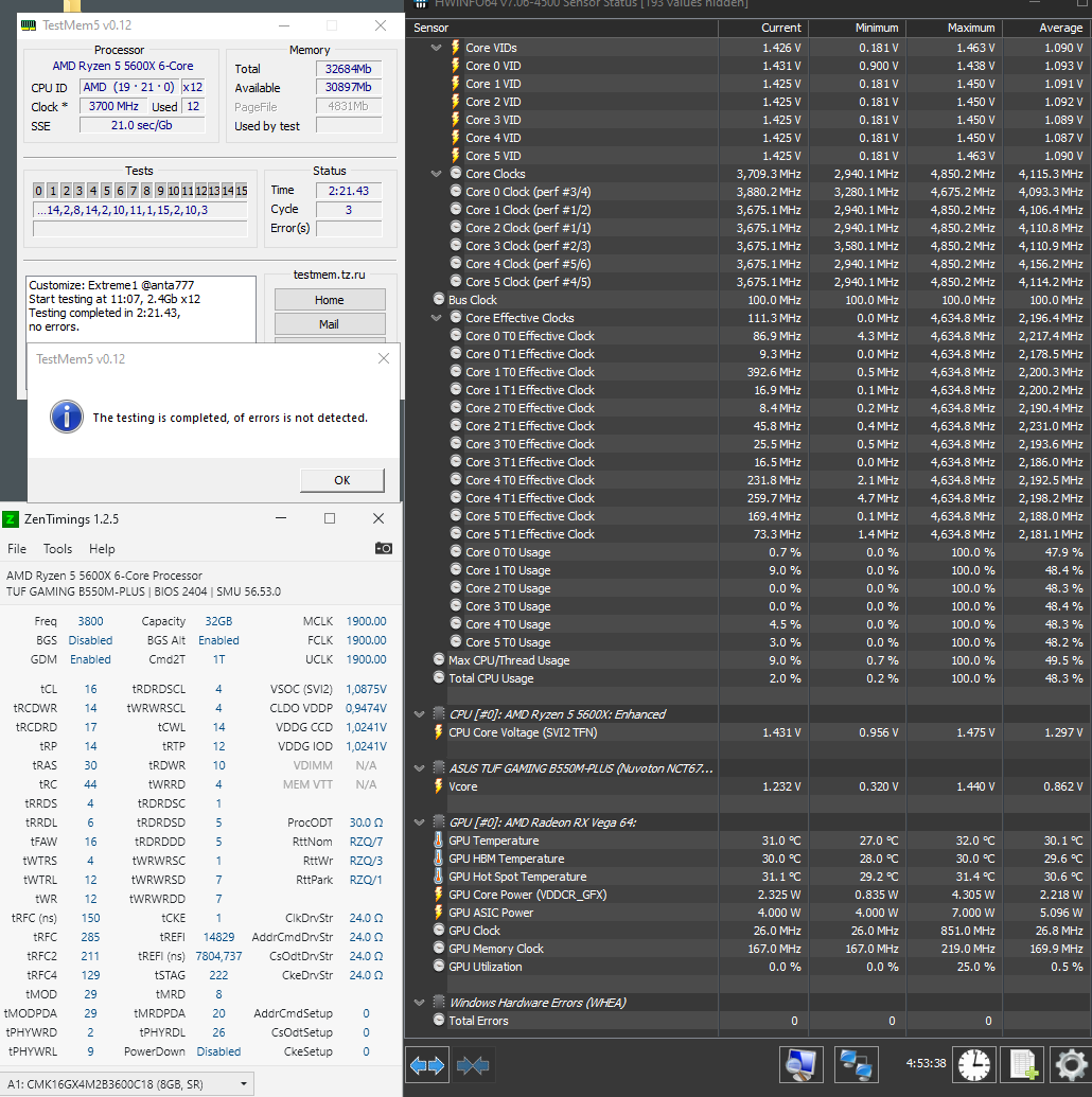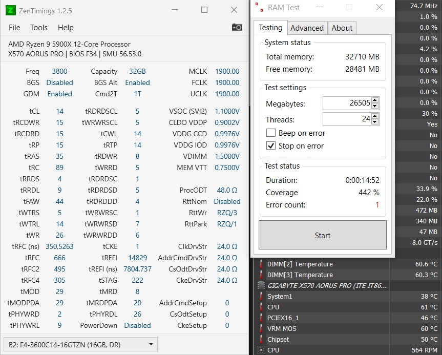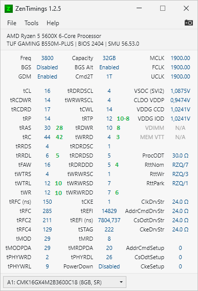 Edit: Alle Settings @ 1.4250V vDimm (SoC 1.100v, VDDP 0.950V, CCD/IOD 1.025V)