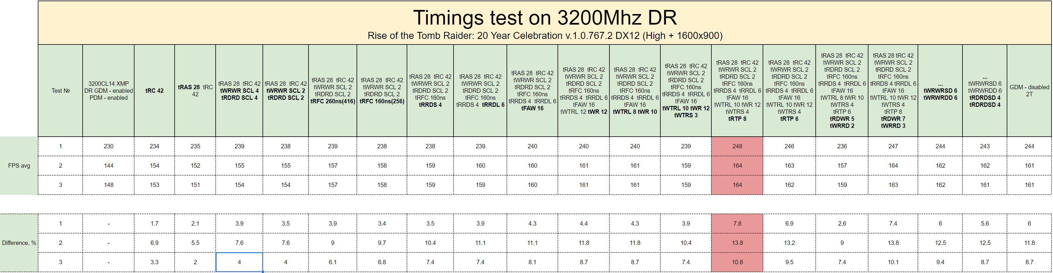 Welche Timings zuerst für Spieleperformance trimmen? Im angefügten Bild habe ich mehrere Optionen aufgeführt, die eventuell noch gehen könnten.