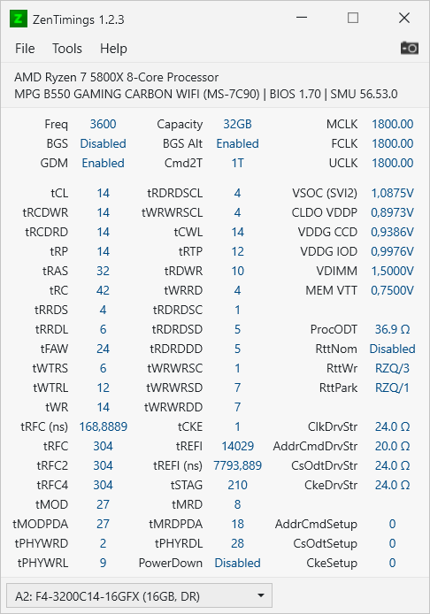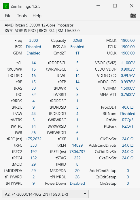 Entweder ich bleibe beim straffen Setup und trimme weitere Timings (wie tRTP...) oder ich gehe zurück zum lascheren Setup um mehr Spielraum für das Trimmen der Timings wie tRTP, etc., zu haben, sollte das überhaupt einen Unterschied machen bei der Stabilität (straffes Setup vs. lascheres Setup).