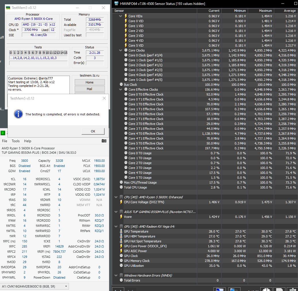 Das hätte ich sogar als einen der Verdächtigen auf dem Schirm... bei 600 und 580 hatte ich Fehler bei 5000 und 6000 %... Kann natürlich auch Zufall sein oder wie ist das eigentlich mit den Fehlern? Wenn man die Test oft genug wiederholt, bekommt man dann eine Gauß Kurve aus den Prozentwerten bei denen die Fehler auftreten.MehlstaubtheCat schrieb:tRFC kannst sicher weiter runter als 580 meist bei etwas unter 560 dann endgültig Schluss