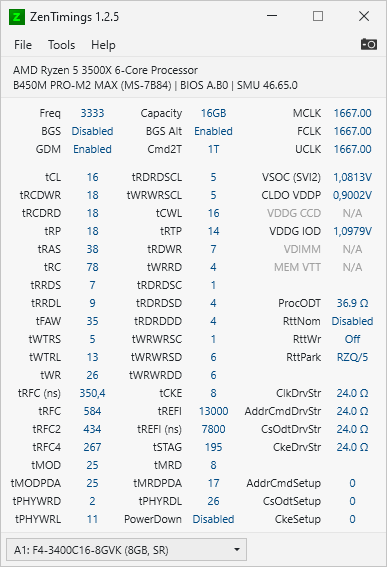 Trcdrd 20 und trp 20. vielleicht geht auch 19, aber zunächst geht es ja um den BootEgbert2 schrieb:Ein Freund hat sich G.Skill RipJaws V schwarz DIMM Kit 16GB / DDR4-3400 / CL16-18-18-38 gekauft. Lot-Code ist 25C. CPUZ sagt HYNIX-RAM