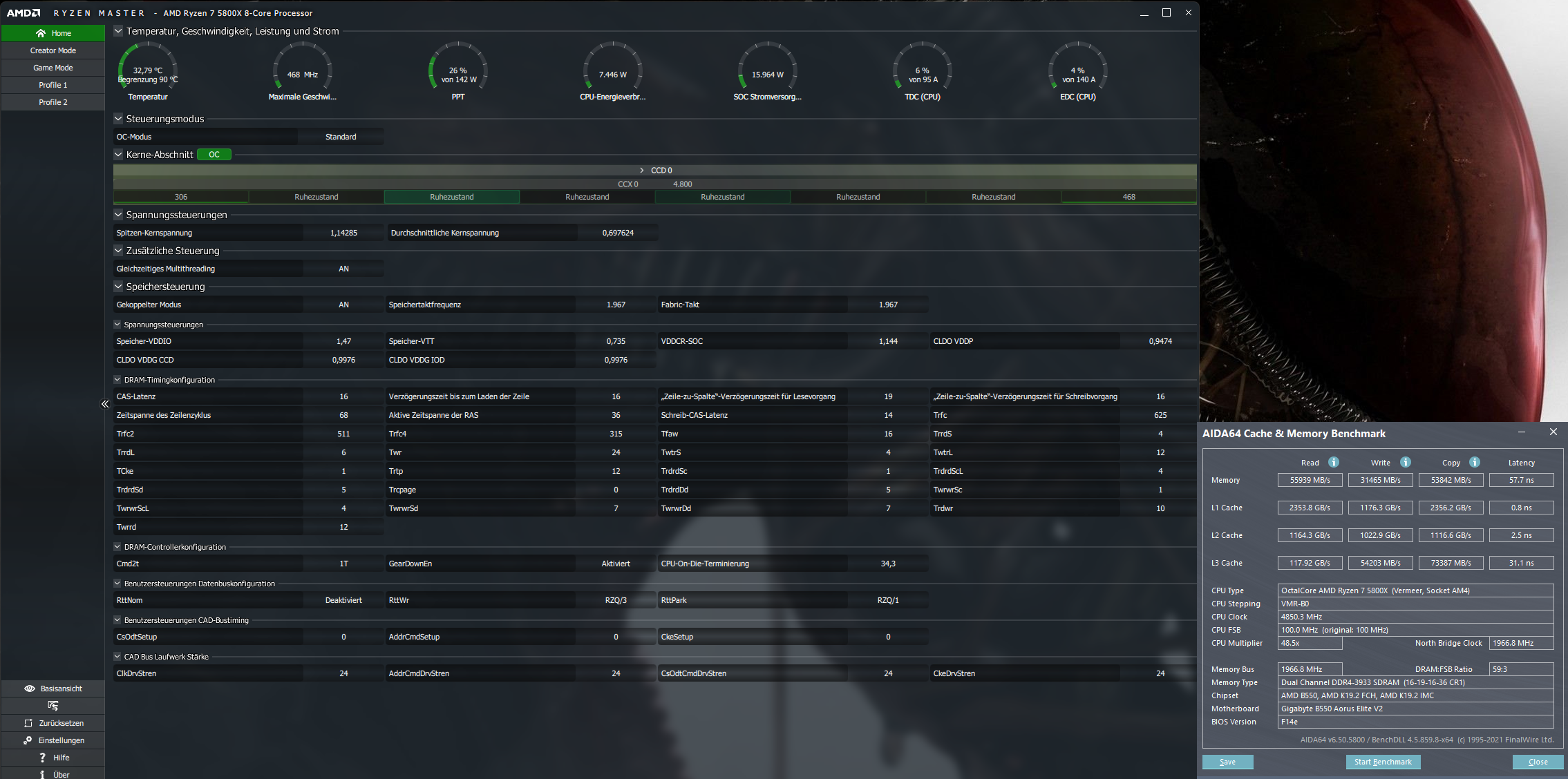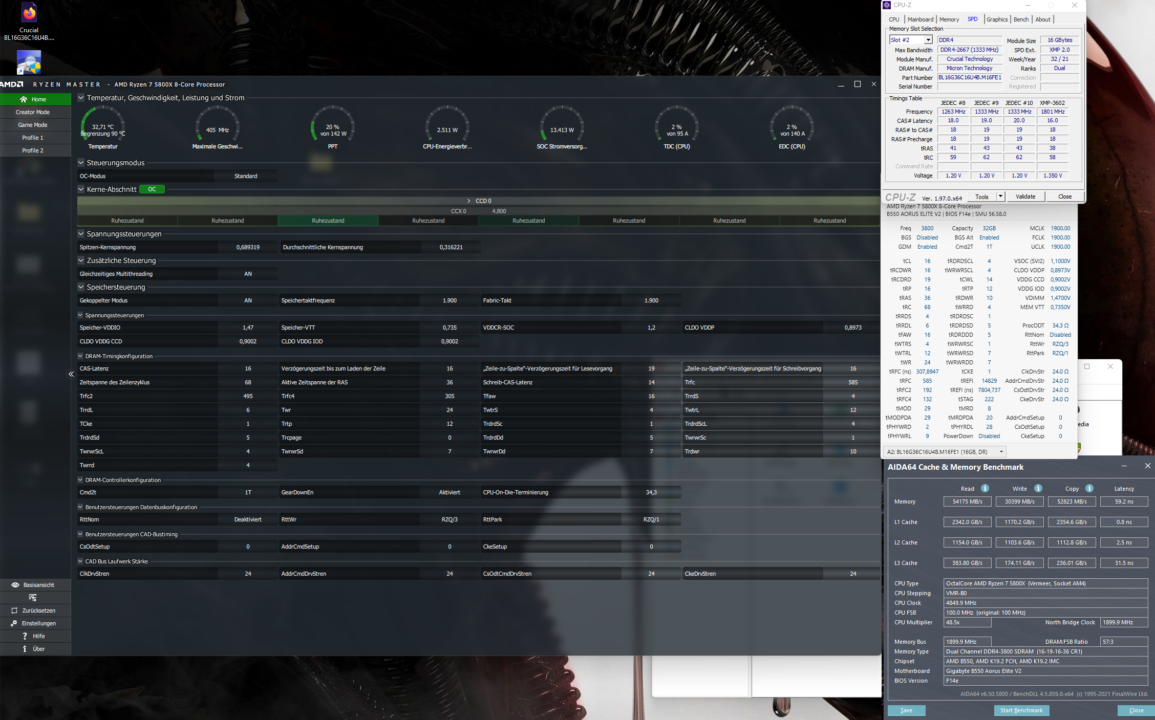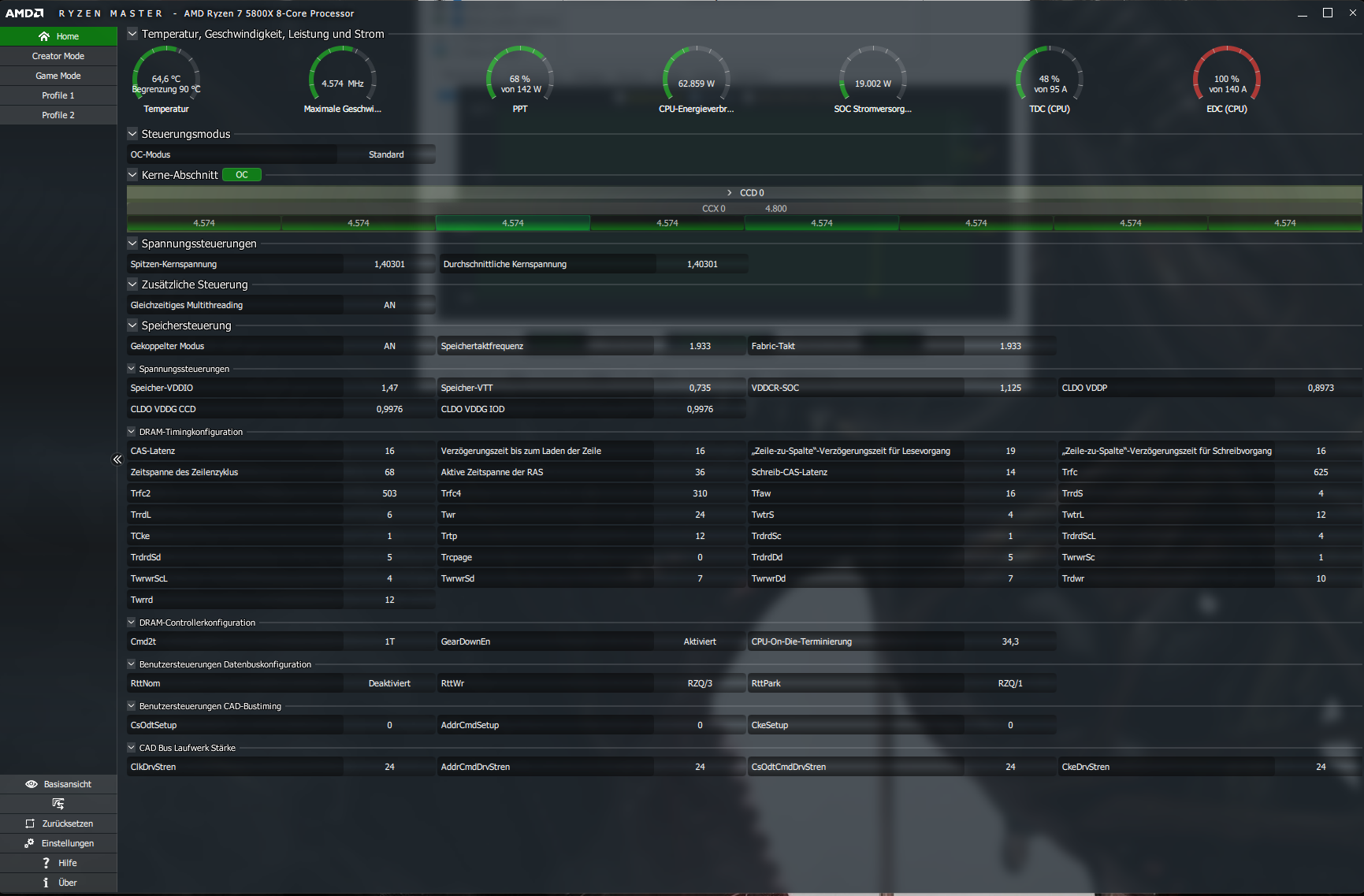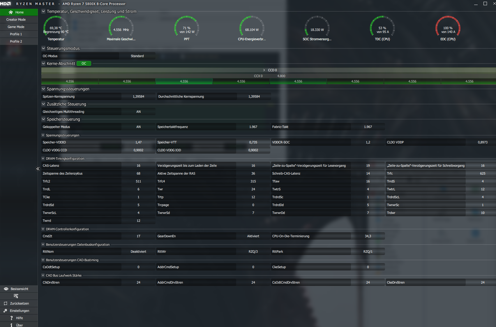 Was ich geschafft habe ist die RAM Vcore auf die 1,45v zu stellen und 3600MHz, sowie den iF Takt auf 1800MHz, so weit so gut. Stabil und Fehlerfrei ist alles, ABER...