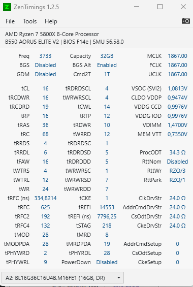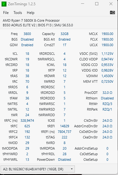 Lasche Timings aus dem zerocoolrider Guide + 1900Mhz Fabric Takt (3800Mhz)
