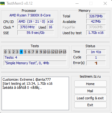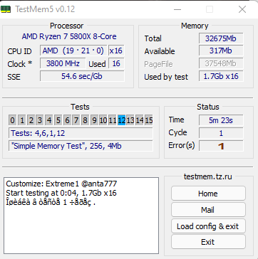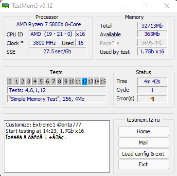 Der Test läuft. Für 6 Cycles braucht er ca. 3 Stunden. Fehler kommen aber meistens schon nach 30-60 Minuten. Werde mich melden, sobald was entdeckt wurde.