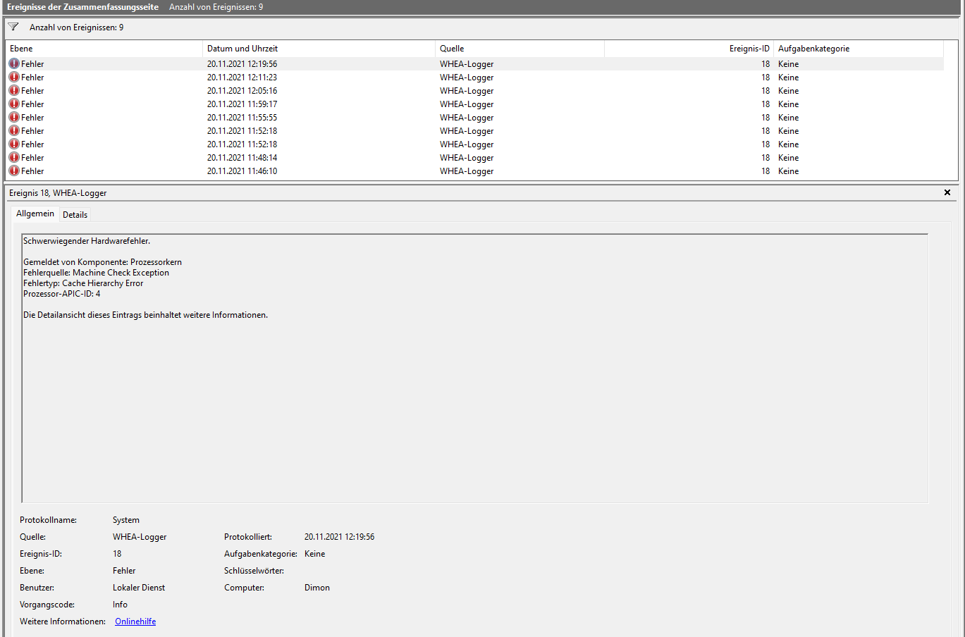Nicht das dein Speicher defekt ist, würde auch zu den WHEA Errors passen.Dimon2011 schrieb:ja XMP läuft bei meinem RAM sowieso nicht.