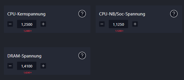 Ich würde die DRAM Spannung auf 1,42V setzen LLC auf 3 und nicht weiter drüber nachdenken,