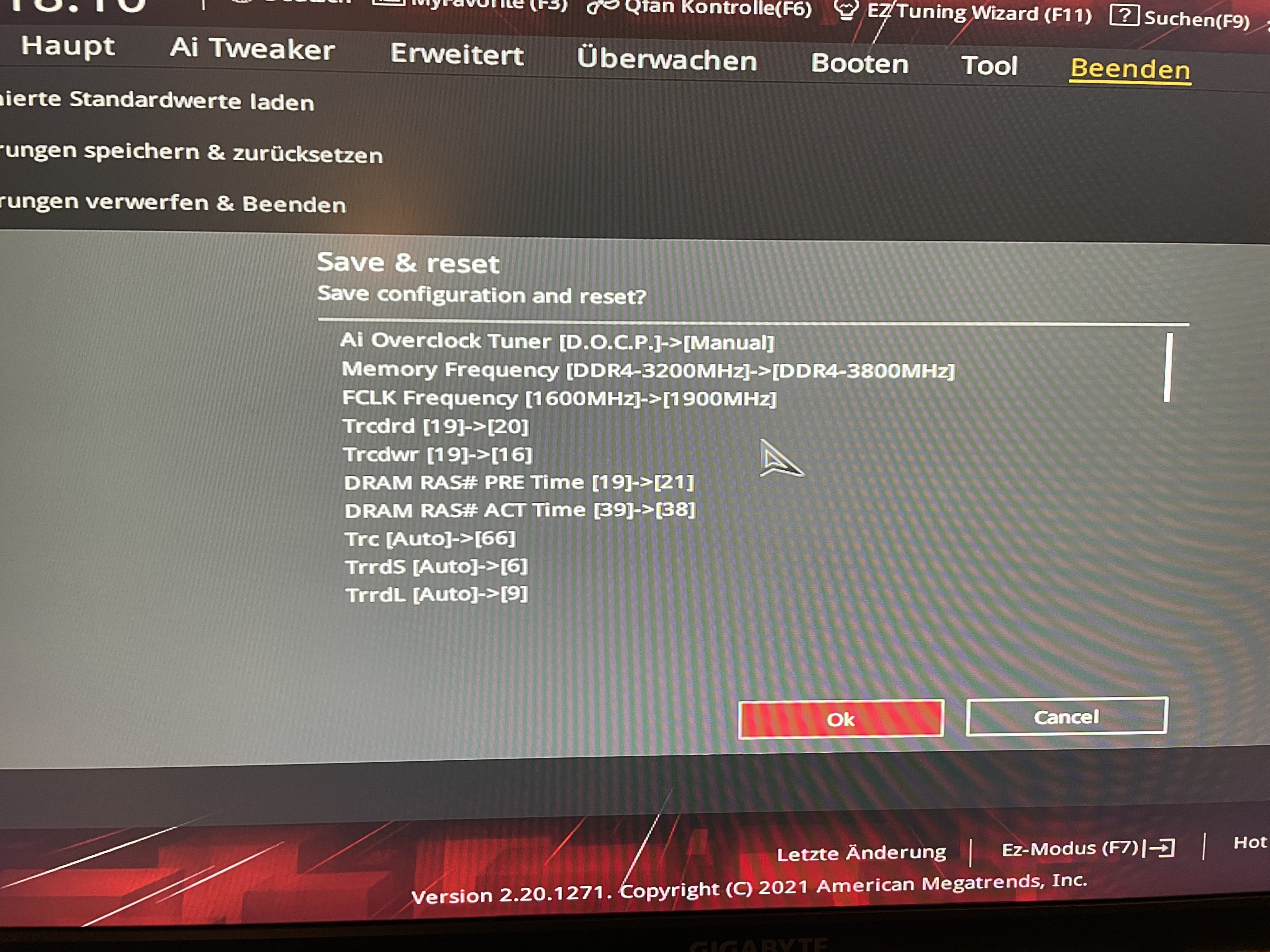 Habe den Takt jetzt mal reduziert auf 3733 inkl FCLK auf 1867.