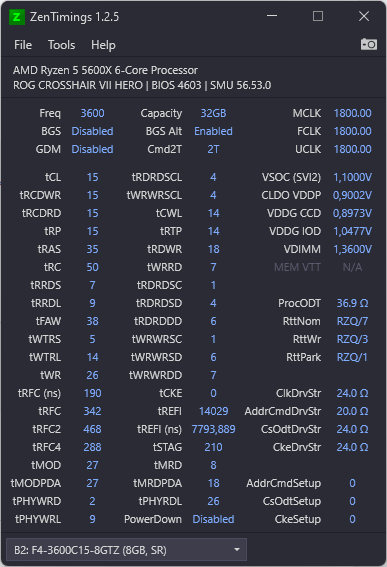 Zudem irritiert mich etwas, dass ich bei eingestellten 1,420V DIMM immer (laut HWInfo) 1,44V anliegen habe. Bei eingestellten 1,410V sind es 1,424V real. Habe aber aktuell die 1,420V eingestellt nach dem BIOS update/reset