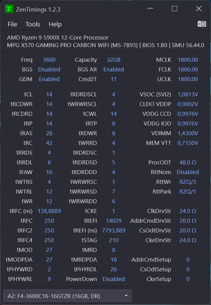 Ok, Windows 11 weiß ich nicht. Unter Windows 10 sieht es besser aus. Kannst ja mal die Werte eingeben von mir mit VDimm 1,41.