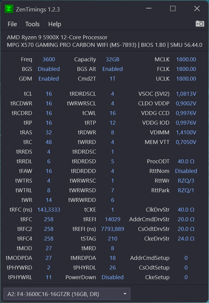 PS: Und ggf. einfach die Messung (durch Doppelklick auf das Latency Feld) nochmal laufen lassen. Ich hatte eben bei der ersten Messung plötzlich auch einmalig 62,4ns und bei allen weiteren dann normal 57,5 bis 58ns.