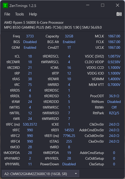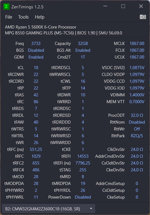 Bekomme meine in der Signatur stehende Corsair auf maximal 3733 bei selben Timings von 18-22-22-22-42. Selbst bei 3200 kann ich nix an den Timings ändern. 😔 IF auf 1/2 des RAM Takts.