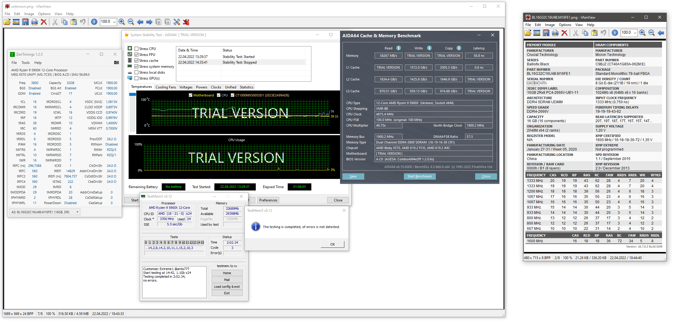 was mich wundert, dass im DOCP (XMP bei ASUS) der Memory auf 72468 kommt und wenn ich dann die Haupt-Timings verändere der dann rapide 52480 abnimmt jedoch beim Rest mehr schafft (oder hab ich nen denk-fehler). Latency ist hoch wegen meiner Background-Programme