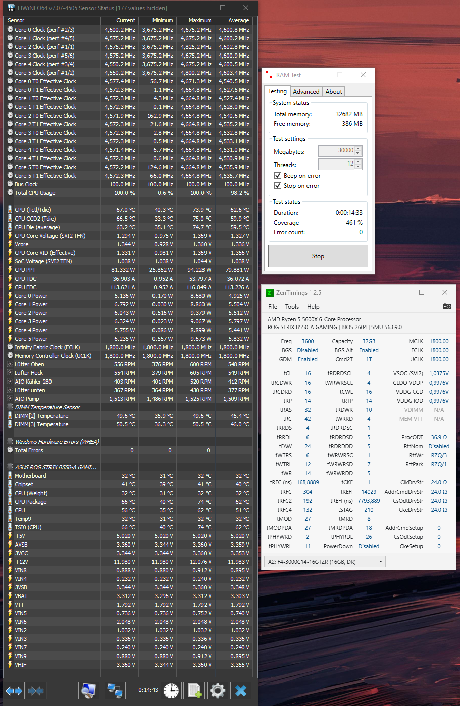 Ich glaube mehr macht mein Ryzen nicht mit, ich habe eben 4000MHz getestet mit 1,47v, hat nicht funktioniert, ich glaube ich bleibe lieber auf den 3933Mhz.MehlstaubtheCat schrieb:Zu deiner Frage, ich sag immer bis 1,45V bei gutem Luftstrom und bis 1,5V bei aktivem Lüfter über den Rammodulen.