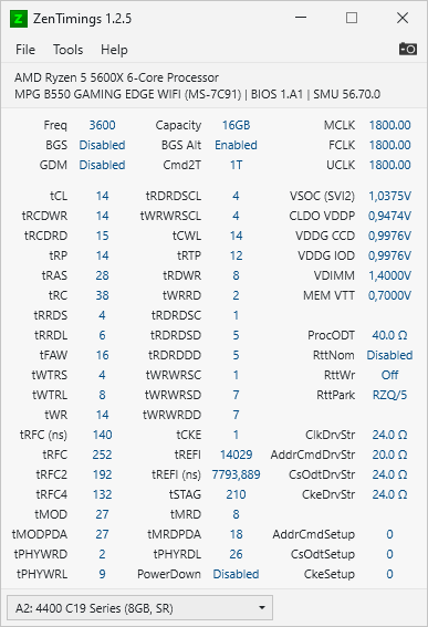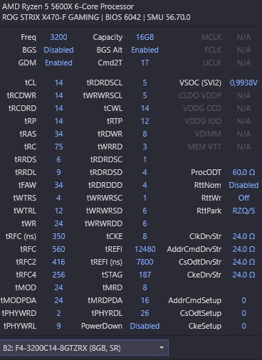 Board in die RMA, Board wurde umgehend getauscht. Dasselbe Fehlerbild. Allerdings läuft der B2 5600X nur mit 2x8GB B-Die 3600 MHz, CL14. Crucial macht vorher dicht (siehe angehängte Timings).
