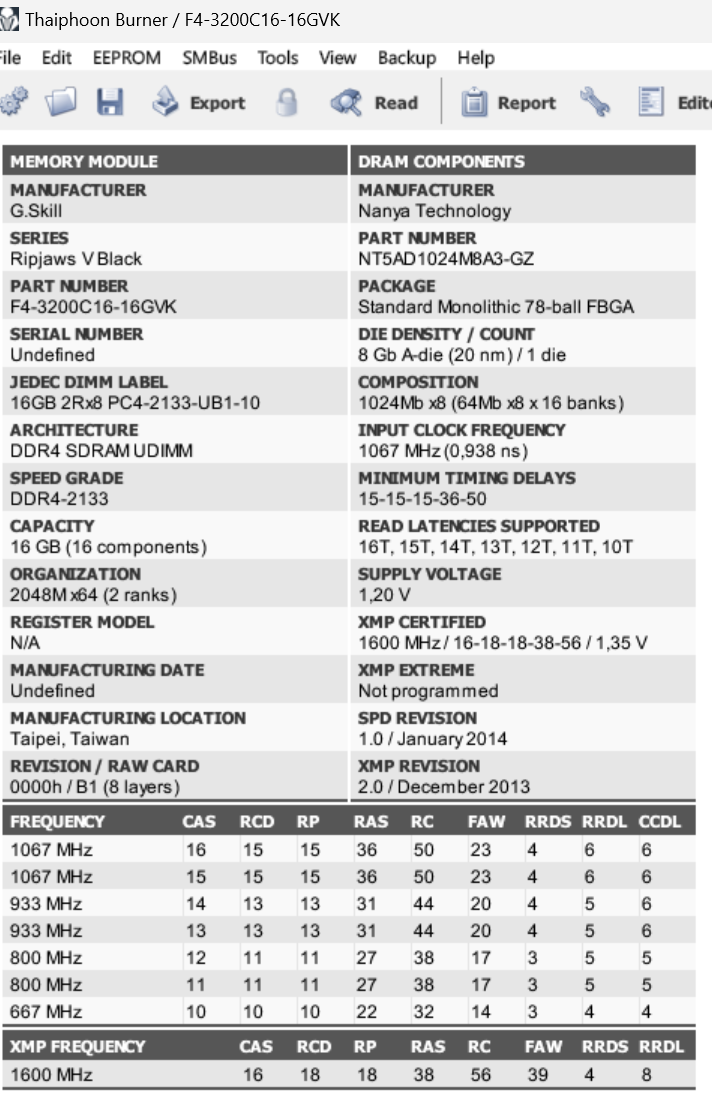 Laut Thaiphoon Burner habe ich folgenden RAM: