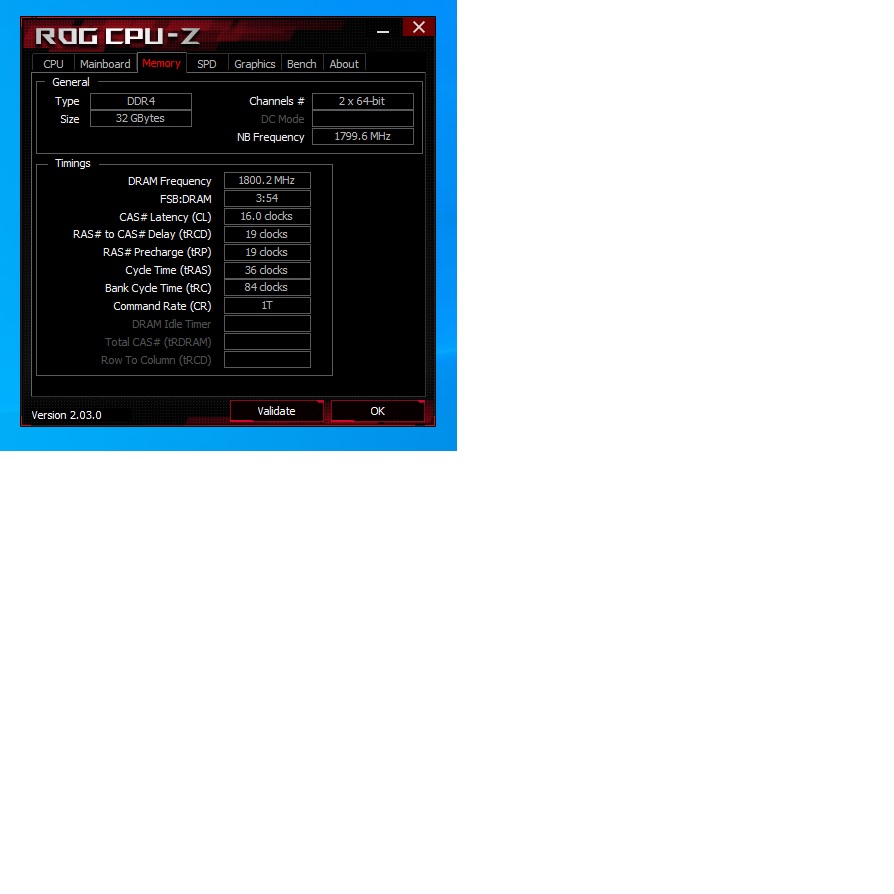 Dein Ram läuft mit 3200. Bei Cpuz musst du im Reiter Memory schauen. Nur dort wird die aktuelle Geschwindigkeit angezeigt._Cloud_ schrieb:Lustig ist das 2 Tools unterschiedlich auslesen der eine sagt 1798mhz CL16-19-19 36 was mit dem xmp übereinstimmt