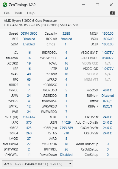 Ich hänge auch noch den Screenshot von ZenTimings an, vielleicht fällt einem ja was auf, der das häufiger als ich macht. Einstellungen sind soweit auf Auto bzw. ich hatte vorher aus Faulheit XMP aktiv, im Bios habe ich sonst nur Taktraten, VDIMM und GDM eingestellt.