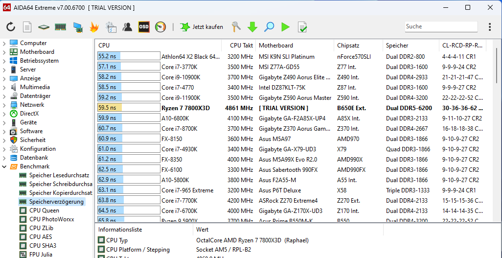 Speicherverzögerung: 63,3 ns