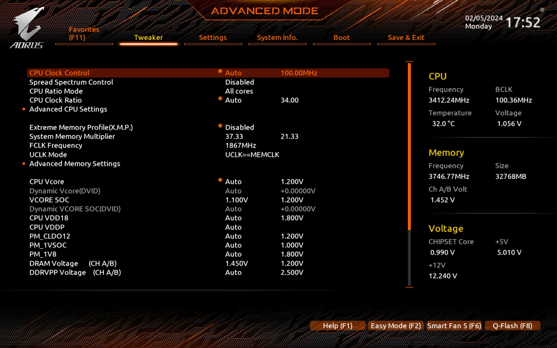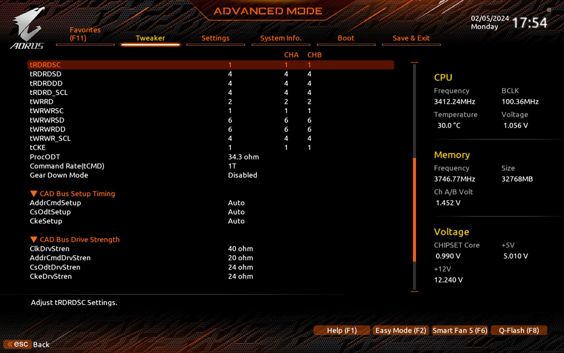 Da du schon XMP aktiviert hast, dürfte die VSoc eh schon bei ca. 1,1V liegen (vlt sogar mehr) und der IF-Takt liegt auch schon bei 1800MHz. D.h. aktuell bist du eh schon über der Effizienzschwelle drüber. Ein "lasches" 1900/3800CL16-Setting (siehe mein Vorpost) könnte ebenfalls mit 1.1VSoc auskommen und auch bei der RAM-Spannung muss man nicht elendig viel zulegen, wenn man bei der tRFC und evt. auch tRCDRD bisschen verzichten kann. Gab schon einige Settings, wo der RAM mit nur 1,36-1,38V lief.