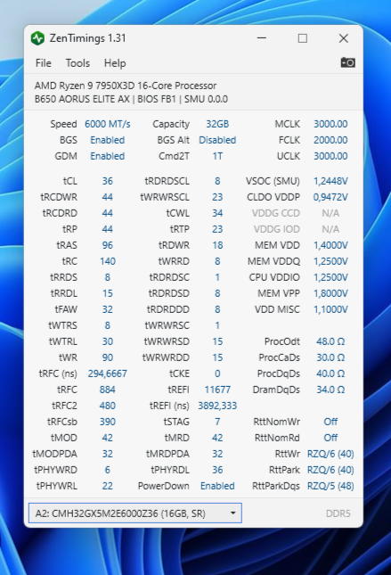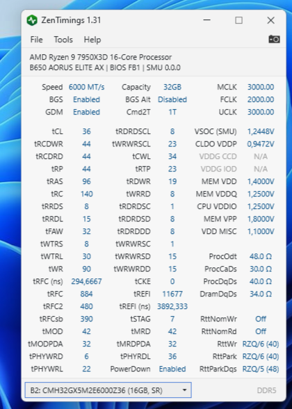 Ver3.43.04 = Micron 16Gbit D-Die. Nicht besonders gut für OC geeignet. Was aber definitv schon mal mit wenig Aufwand mehr Schub gibt ist tREFI, welches bei Dir auf 11677 steht. Kannst mal 50000 probieren.