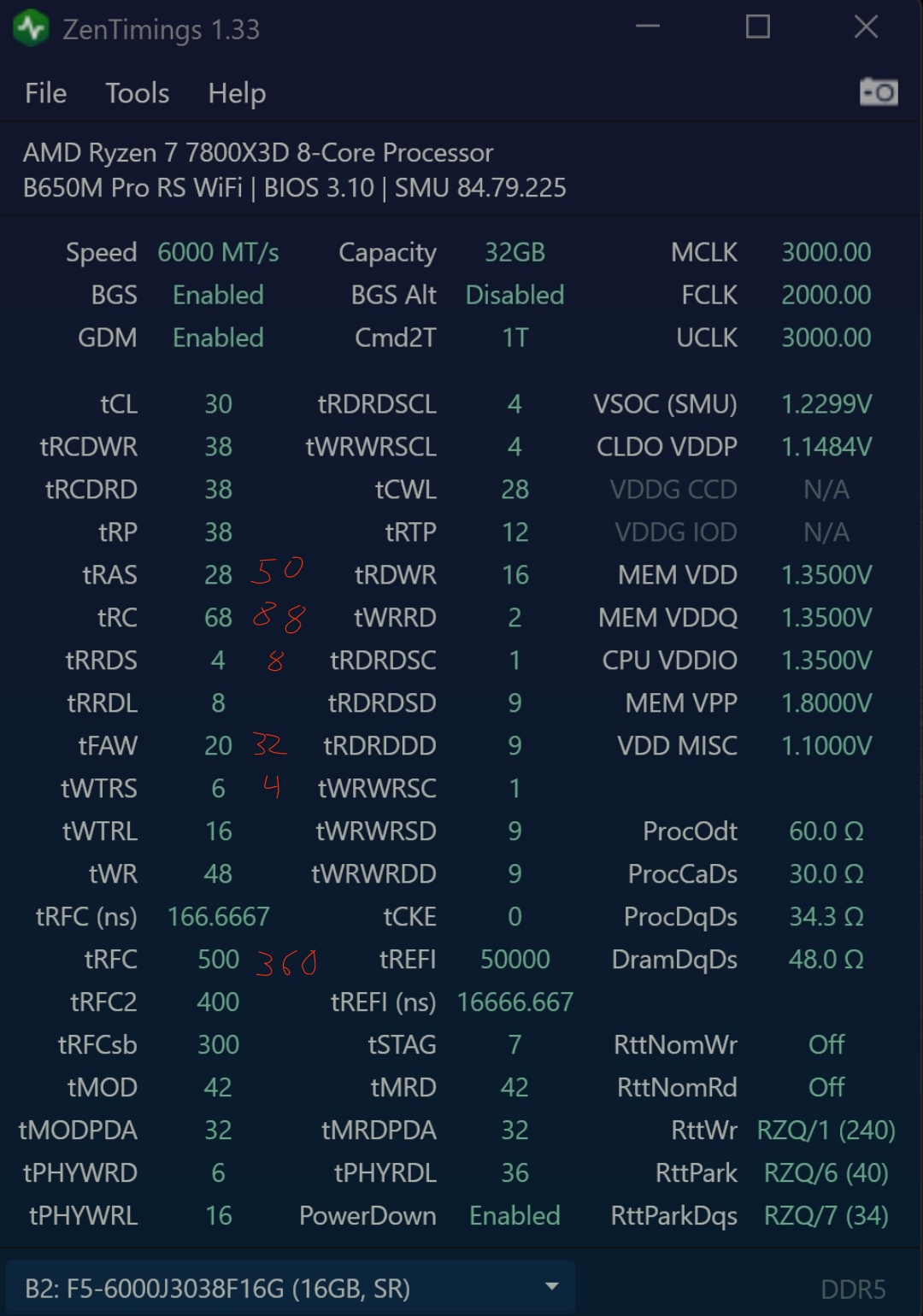 - RAM Spannung VDD von 1.35V auf 1.40V --> keine Änderung