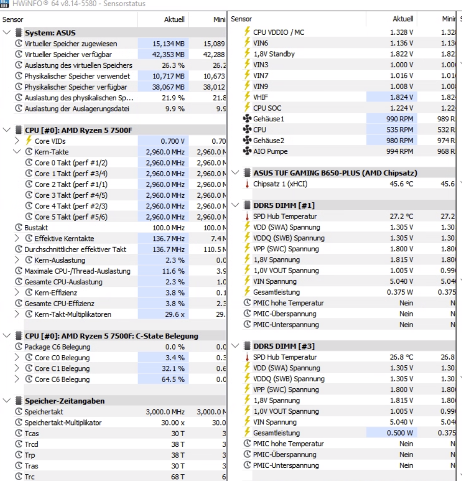 Dann gestern Abend um ca. 18:00 zurück gestellt auf DDR5-5800 und das System noch einige Stunden betrieben, alles war wieder i.O.
