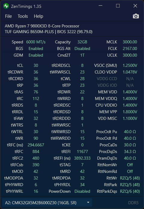 tRFC mit 496 müsste glatte 165ns ergeben (ist aber nicht wichtig)