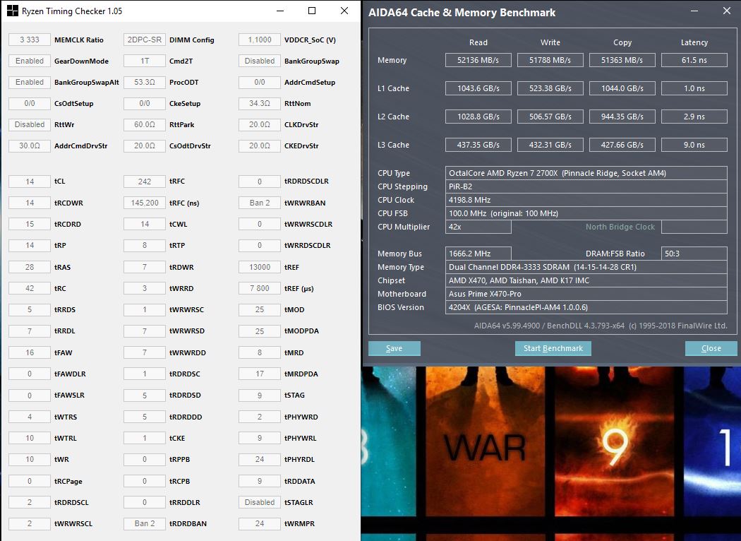 So zumindest habe ich meine 61,5 ns erreicht, die für DDR4-3333 wirklich schon sehr niedrig sind.