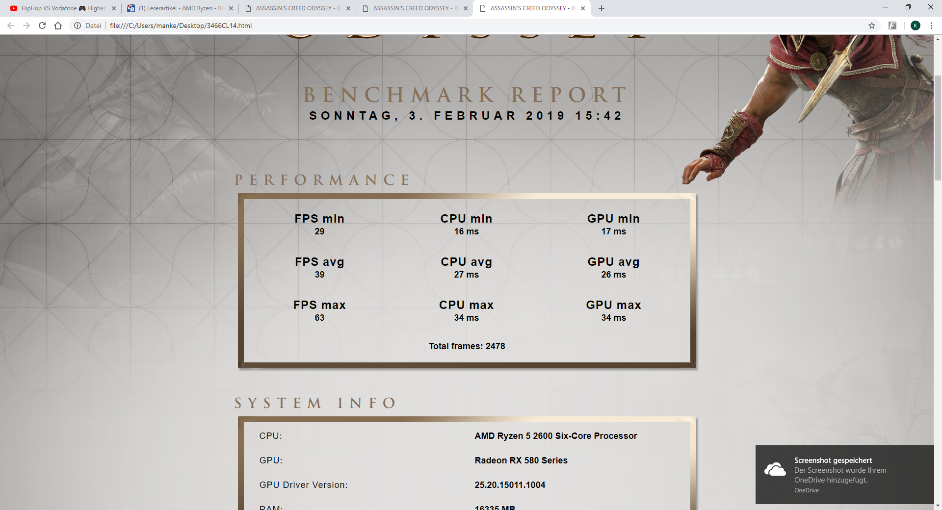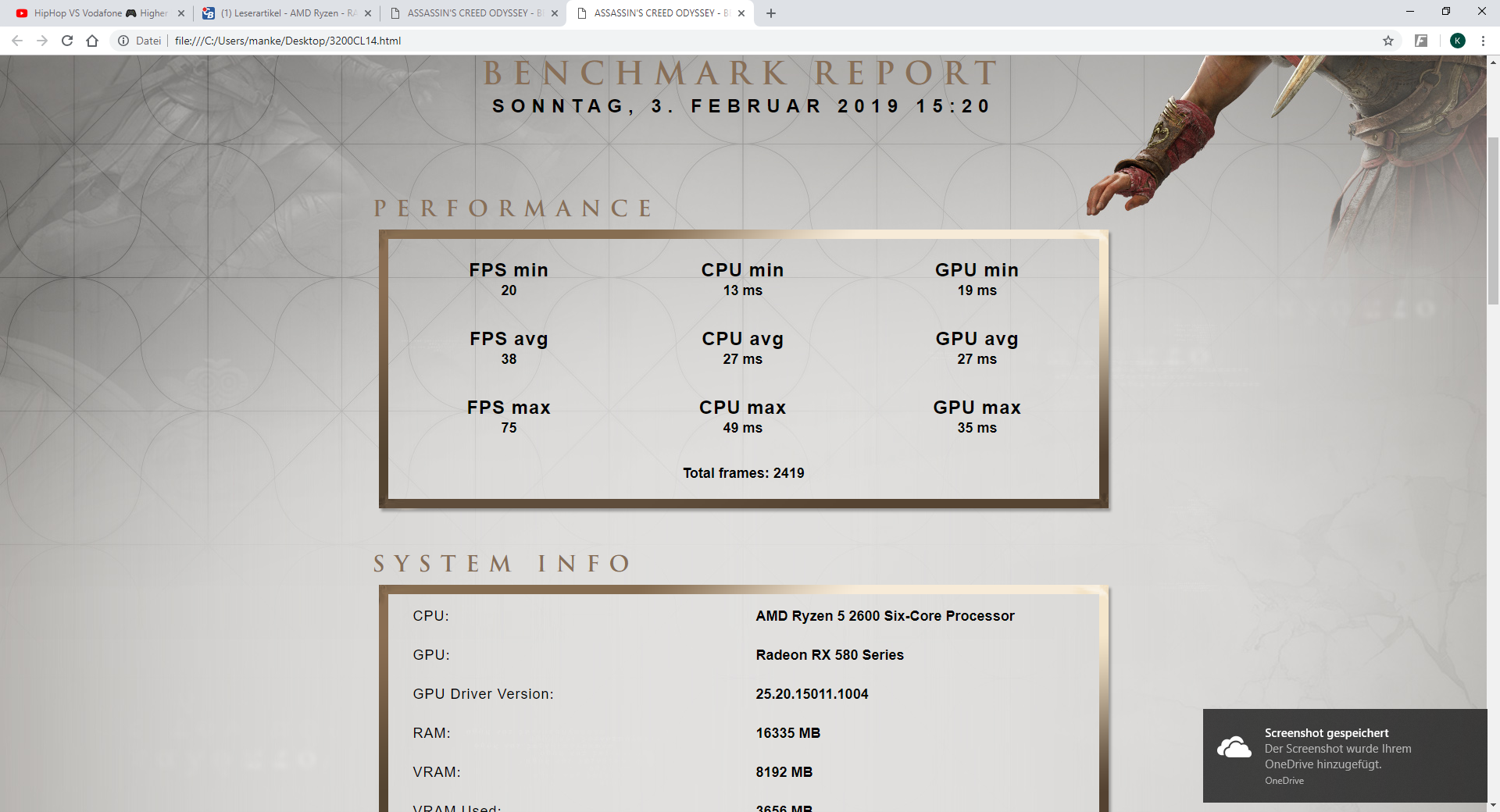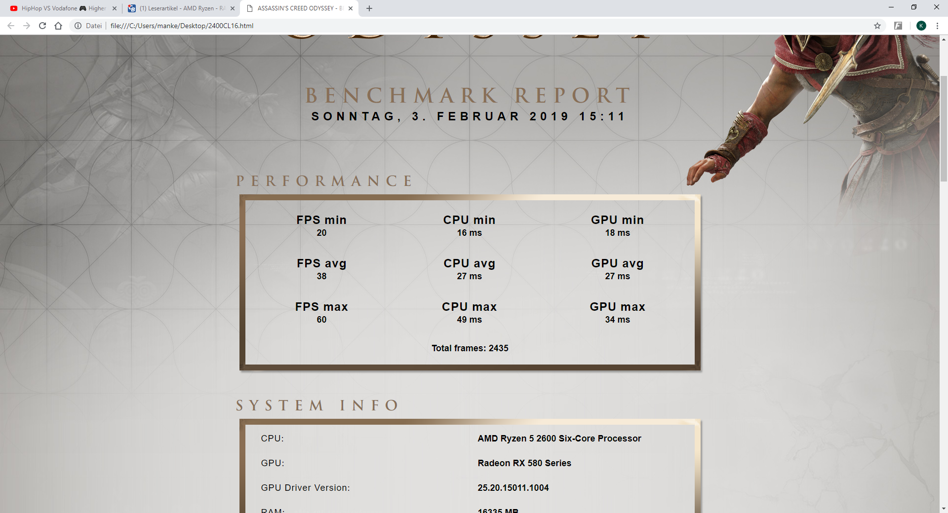 Das kann dann aber natürlich am Spiel liegen, da AC Odyssey nicht getestet wurde und ich die bestehenden Vergleiche nicht machen kann, da die Titel fehlen