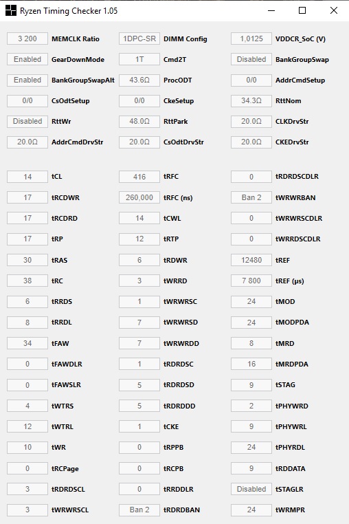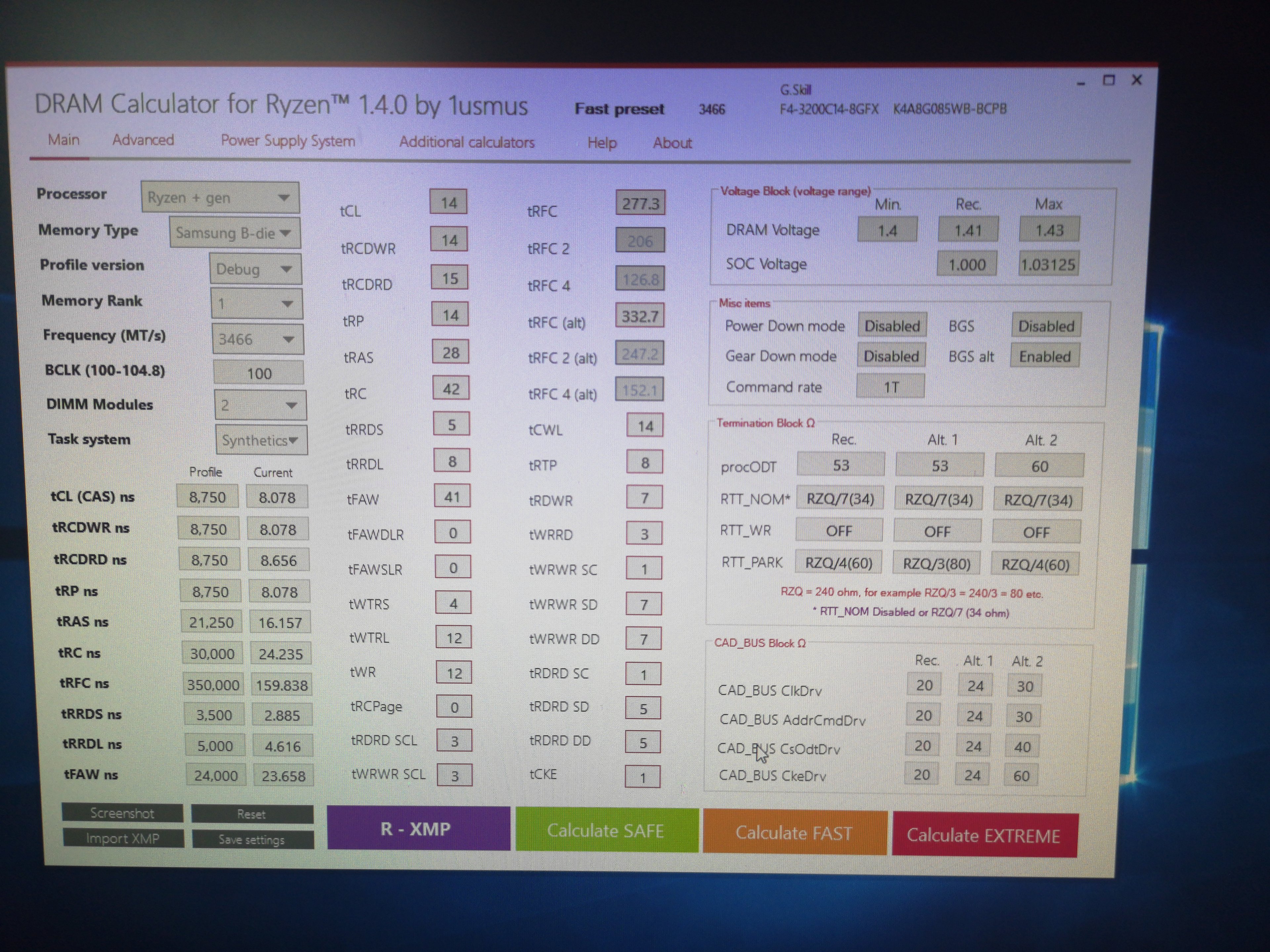 Hier nochmal die beiden Werte aus dem RTC zum Vergleich. ProcODT war Standard auf 60 Ohm jeweils. Ich konnte mit den alten Settings bis auf 43,6 runter. Auch mit dem fast preset hat zumindest der Boot geklappt.