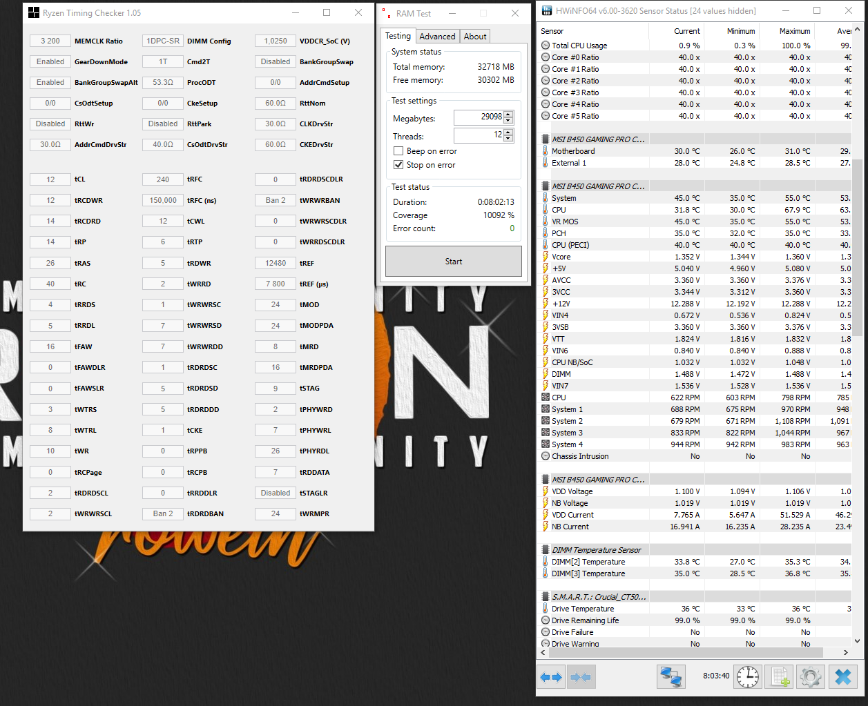Mein 32Gb Setup wird mit dem 3200 FAST Setting in Karhu oder Aida64 etwa 46°C warm. Spiele ich aber mal 2-3 Stunden Battlefield V dann sehe ich da durchaus Peaks bis auf gute 50°C. An der Stelle heizt die GPU einfach den Ram darüber so auf. Wenn das Setting nicht 100% stabil ist kann es durch mehr Temp. kippen und du bekommst die Fehler.
