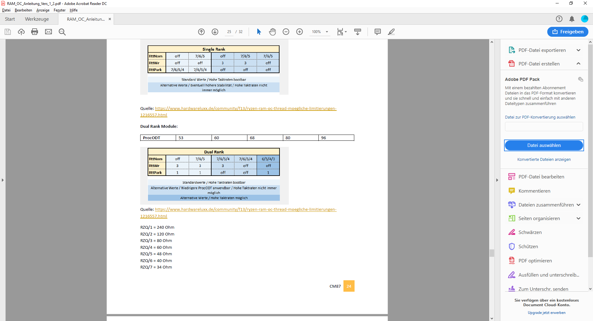 Park 1 und Nom, die Werte 7/6/5 die da angegeben sind Teiler. Ausgehend von 240 Ohm. Du stellst im Bios da kein Ohm ein, sondern den Teiler. Natürlich kannst nur einen wählen. Also RZQ/7 wäre halt dann die 7. Gibt halt mehre Möglichkeiten die da funktionieren können. Das muss man austesten.