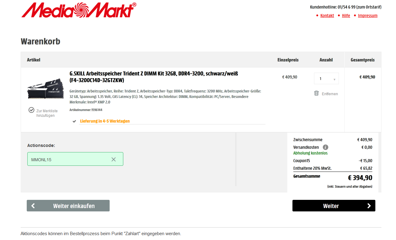 Nun will ich das letzte Bauteil aber nicht bei Amazon kaufen, wo es den RAM für 439€ gibt.